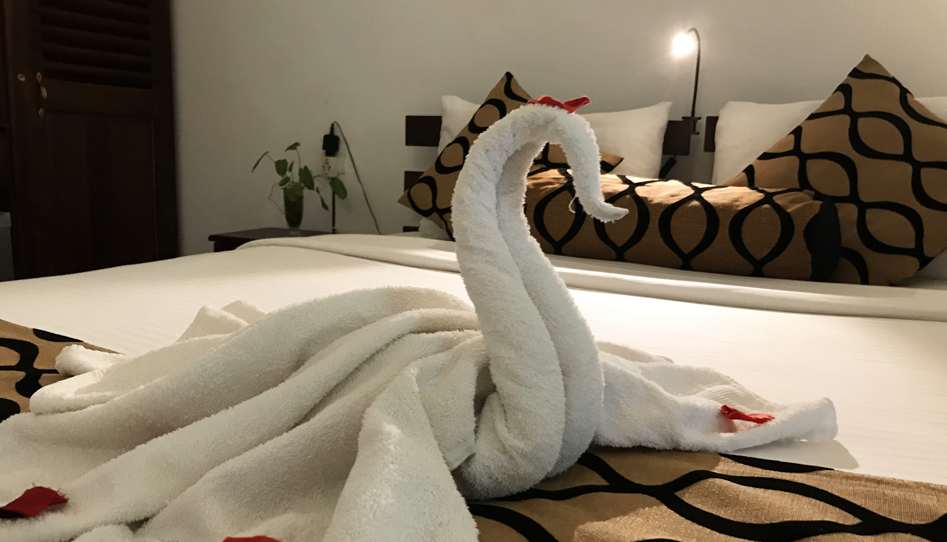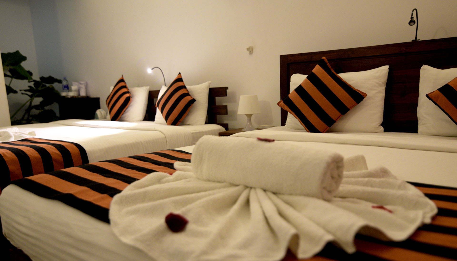 spacious, modern, air conditioned rooms alone with a outdoor pool and a leafy, soothing